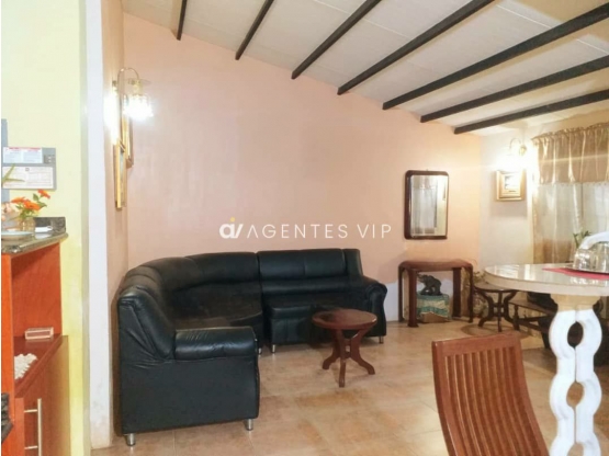 Casa con excelente ubicación en el urbanismo, con 3 habitaciones, una ellas con baño, un baño de visitas, cocina con tope de granito, campana, tope de cocina a gas, comedor y desayunador, cuenta con garage y ampliación, ideal para family room, área de lavandero y patio, su piso de cerámica y techo de machihembrado Servicio de agua con pozo perforado, aseo urbano de alcaldía y privado Parque infantil, campo de fútbol, áreas verdes, cercana a centro comercial, colegios y fácil acceso al transporte público Vigilancia 24/7